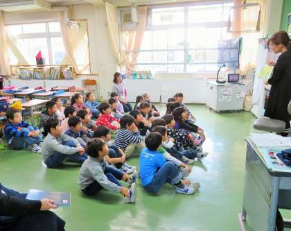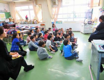 今日の1年生の始業前は朝読書です。保護者の皆さんが読み聞かせをしてくださっています。どの子も身を乗り出して、絵本の世界に惹きこまれていました。