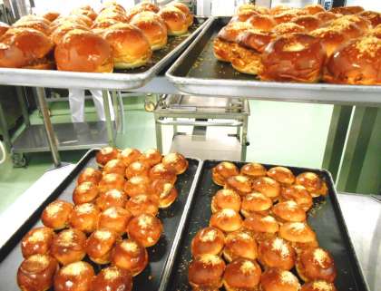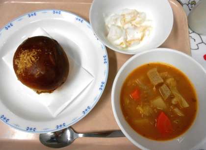 今日の<ピロシキ>には、ロシアの人にとって日本でいうおにぎりのような存在なのだそうです。給食では、ひき肉と野菜・春雨を炒めたものをはさみました。