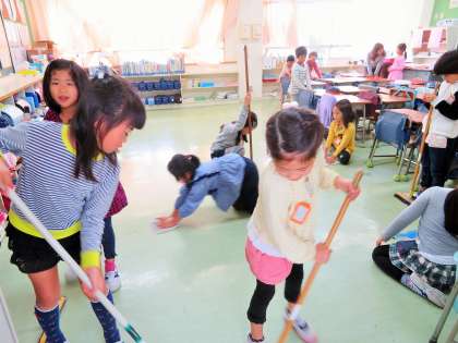 1〜3年生も無駄なおしゃべりをしないで、お掃除ができています。