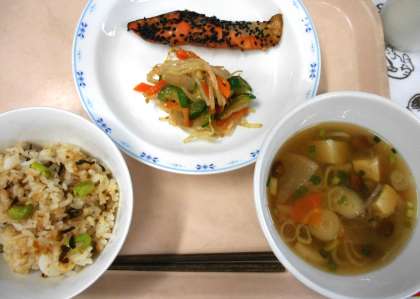 日本には、移り変わる四季があります。春夏秋冬で表される四季をさらに細かく分けたものを二十四節気といいます。二十四節気で、今日から冬至までの期間は【大雪】といいます。雪がはげしく降る頃で、熊が冬眠に入ったり、ぶりの漁がさかんになる頃でもあります。今日は、雪をイメージして<なめこのみぞれ汁>を作りました。