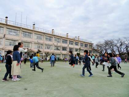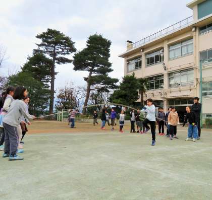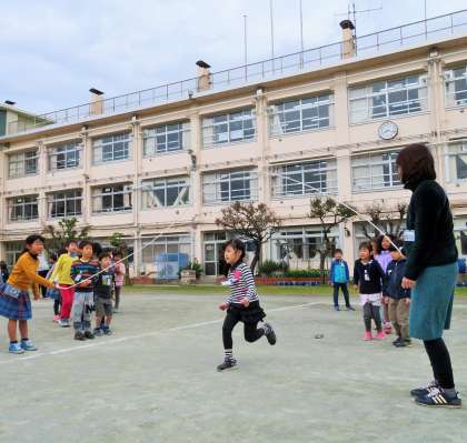 今週は、朝遊びから朝ランニングではなく長縄跳びです。金曜日の体育朝会に向けて、各クラス長縄跳びに取り組んでいます。長縄跳びは、運動感覚づくりにはとてもよい運動種目なので全校で取り組んでいます。