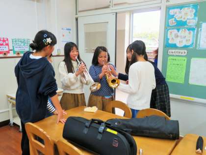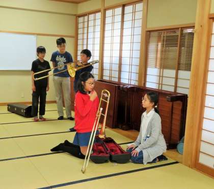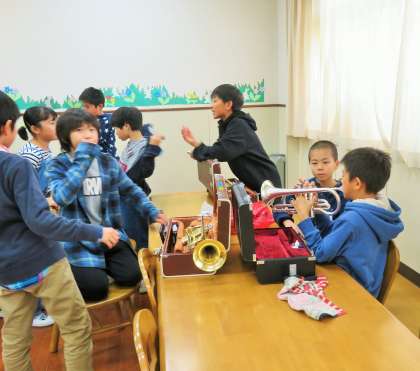 砧小学校の特色の1つ、伝統ある鼓笛の引き継ぎがありました。6年生が5年生に、優しくていねいに楽器・フラッグの扱い方から技まで、自分たちが習得したものを教えていました。