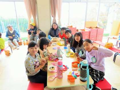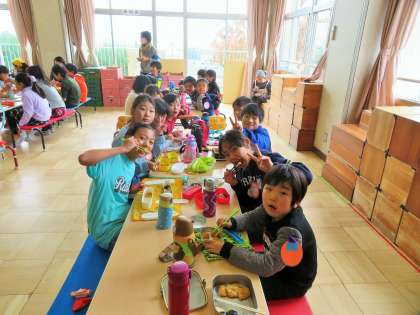 きな粉もち、磯辺もちの2種類を取り分けていただき、すぐに教室や遊戯室でいただきました!