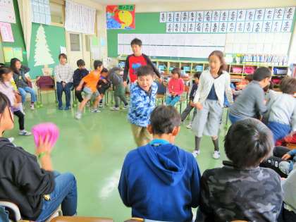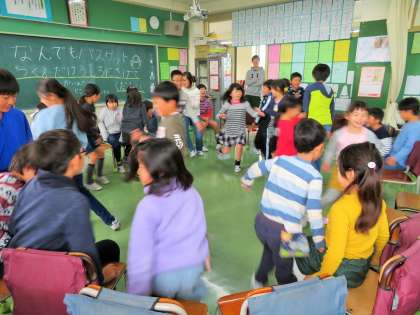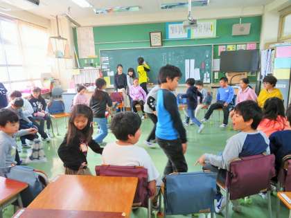 昼休みは室内遊びです。「何でもバスケット」で遊んでいる班が多くありました。