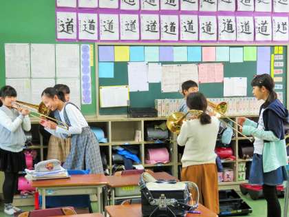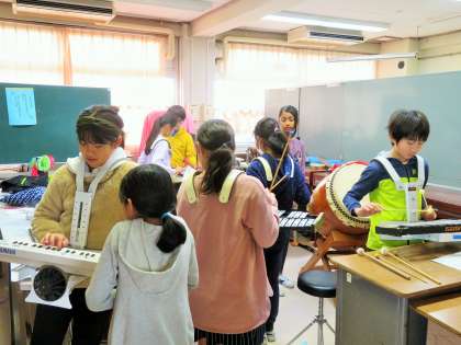 子どもたちは、楽器の重さと伝統の重さをしっかりと感じています。