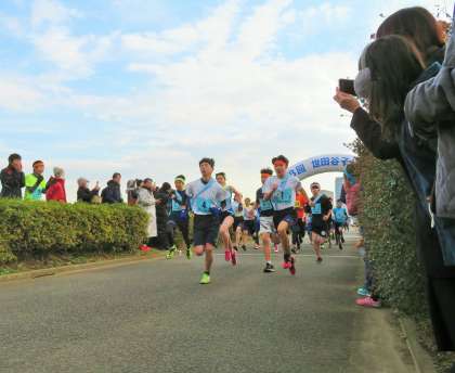 写真は、スタート、1区〜2区へのたすきリレーの様子です。
