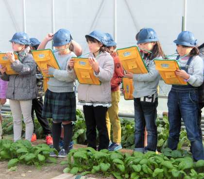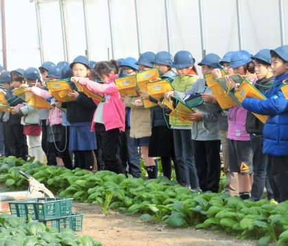 今日は3年生が自然の恵みを受けた「海老澤農園」の畑見学に行ってきました。小松菜やほうれん草、ブロッコリー等、様々な種類の野菜を観察したり、野菜を育てる苦労や工夫について質問したり、見て、聞いて、学んできました。