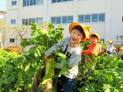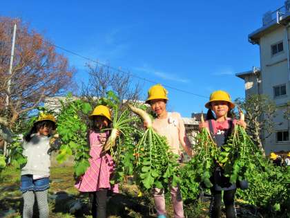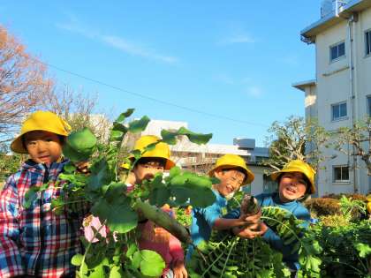 今年は、台風の塩害等により生長は様々でしたが、9月から大切に育てた大根を手に、みんな嬉しそうでした。