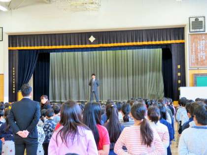 年末の大掃除では、家族のために力を尽くす。学校で取り組んできた自問清掃の力を発揮して、家族の一員としての役割を果たしてほしいという話をしました。