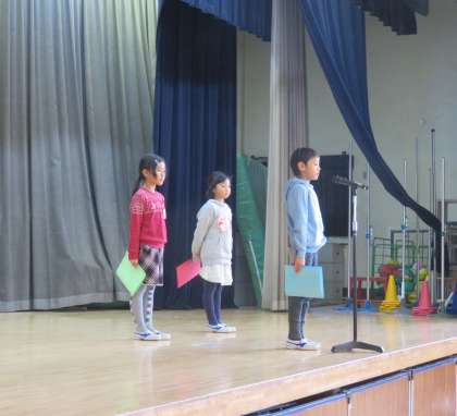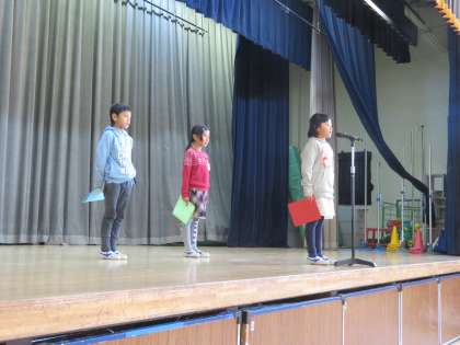 児童代表の言葉は2年生でしたが、きちんと2学期を振り返り、3学期への思いを話していて立派でした。原稿は、お守り代わりに持ってはいましたが、見ないで自分の言葉で話をしていて素晴らしい子どもたちです!