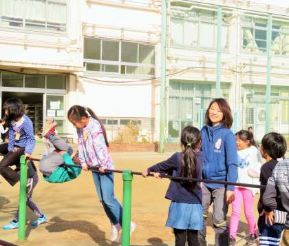 冬休みが終わり、やっと子どもたちに会えました。中休みの校庭は、待ちかねたように遊びまわる子どもたちでいっぱいになりました。先生たちも嬉しそう!