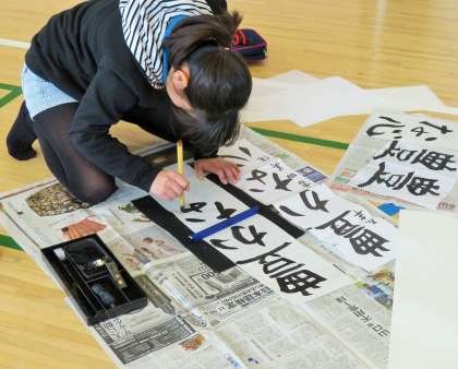 5年生の書き初め会の様子です。「豊かな心」というお題でしたが、お手本を見ながら、一人一人が集中して一生懸命です。