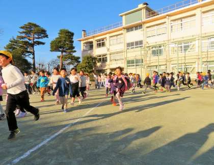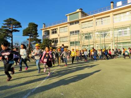 今日から3学期の朝遊び・朝ランニングがスタートしました。今年度の重点目標の一つである「健康・体力づくり」への取り組みです。