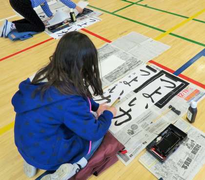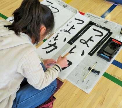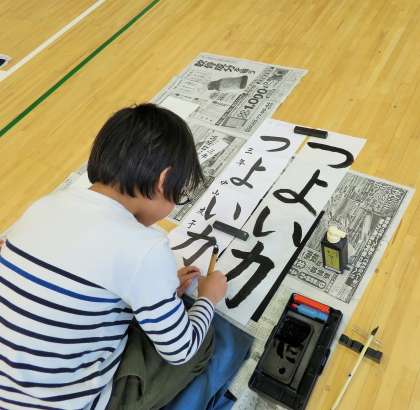 筆づかいの難しさに苦労しながら、「つよい力」を元気いっぱいに書き上げました。『つよい力』の言葉の通り、今年も様々なことに挑戦して、どんどん強く、たくましくなってほしいと願っています。