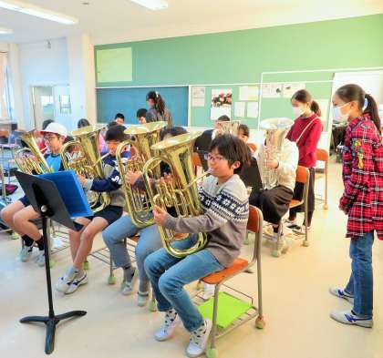 新年を迎えて、初の5年生鼓笛の朝練習がスタートしました。朝7時45分から音楽の遠藤先生、そして担任の先生から、再度、心構えからのご指導いただきながら真剣に取り組んでいました。
