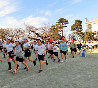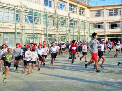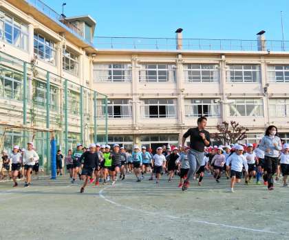 今朝の体育朝会は持久走です。朝は寒さを感じましたが、子どもたちは元気よく走っていました。