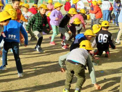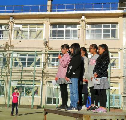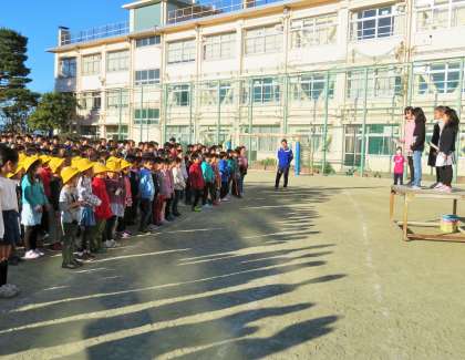 今朝の児童集会は集会委員会による「宝探しゲーム集会」です。校庭に隠してある、宝(キャップ)を探すゲームです。