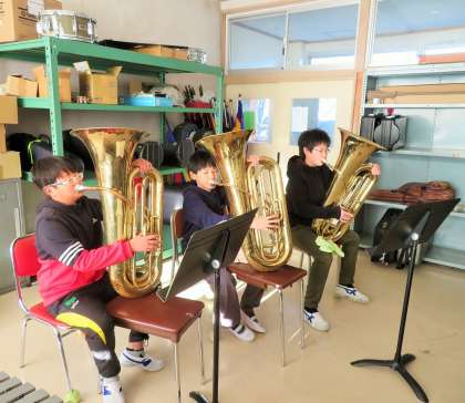 12月中旬からスタートした、5年生鼓笛の朝練習は、7時45分からのパート別練習です。まだ音が少しずつ出てきている段階ですが、やる気いっぱいで頑張っています。