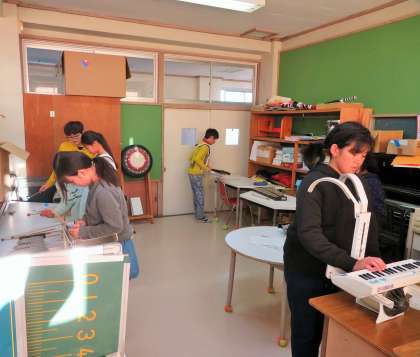 楽譜を見ながら、友達の音を聞きながら、真剣に取り組んでいます!