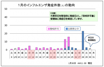 本日、5年2組で発熱による欠席者が急増しましたので、明日より学級閉鎖を行います。