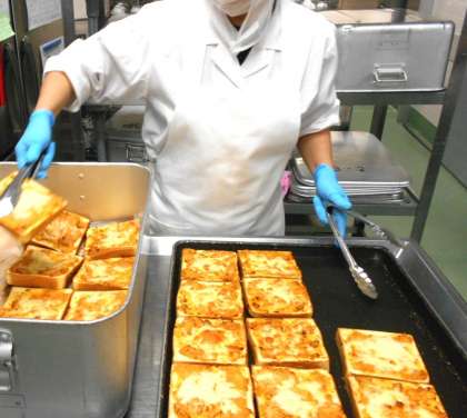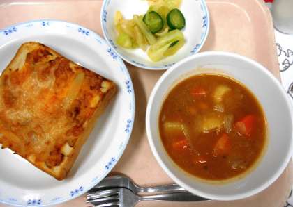 今日の給食の主食は、<ツナごぼうトースト>です。ツナとゆでたごぼうをマヨネーズとケチャップで味付けをし、パンにのせ、上からチーズをかけてオーブンで焼きました。ごぼうは和食に使用することが多いですが、チーズとの相性もぴったりです。子どもたちも、よく食べていました。ぜひご家庭でもお試しください。