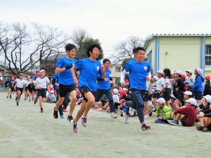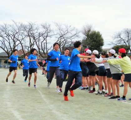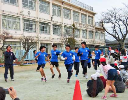 最後に、駅伝選手による「箱根駅伝のペース」である1000m、3分を切るペースでのランニングを見せていただきました。ラスト1周は、さらにペースが上がり、子どもたちは圧倒されていました。