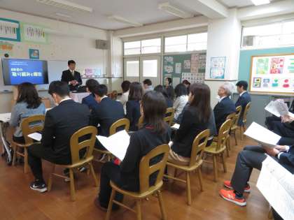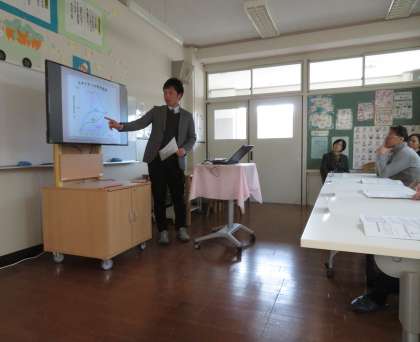 学校からは、心と体の元気アップ「世田谷三快プログラム」4年目の取り組みについて、砧小学校の子どもたちの体力向上について説明をしました。歯科校医の先生からは、本校の「健康・体力向上」の取り組みについて、顎口腔機能の発育にも良いという話がありました。