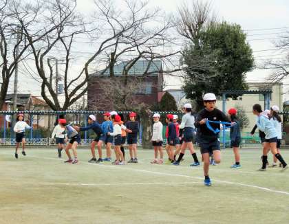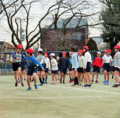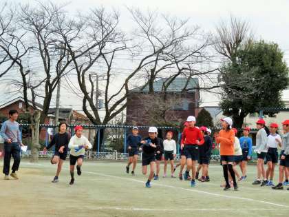 初めての駅伝大会に向けて5年生が練習しています。朝ランニングの成果発表とともに、進級、卒業に向けてクラスの心を一つにすることをねらいとしています。