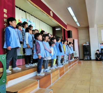 今日は砧幼稚園2月のお誕生日会です。私からのカード、先生からの首飾り、お友達からの歌でお祝いをしました。今月から司会は、年少さんに引き継がれました。とっても立派でしたよ!