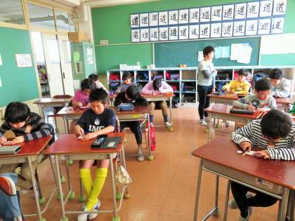今回の昼休み「なかよし班活動」には6年生がいません。3月のお別れ給食・お別れセレモニーの準備なのです。