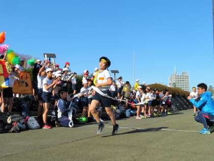ゴールの瞬間です!駅伝を通して、本気の心、応援の心、思いやりの心を感じ、6年生は卒業に向けて、5年生は最高学年への進級に向けて、よりクラスの絆を深めてほしいと思っています。