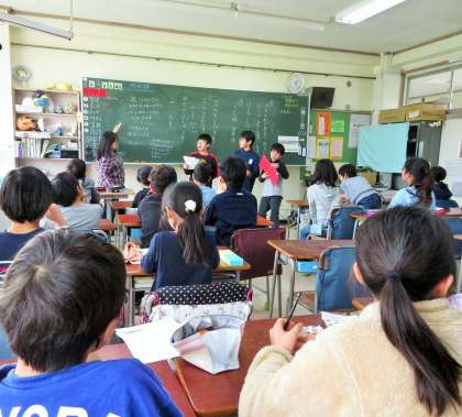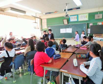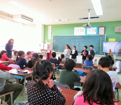 今日のなかよし班、昼休みの時間には6年生がいません。3月のお別れ給食・お別れセレモニーの準備なのです。5年生が中心となって、係を分担していました。
