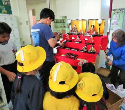 正門からすぐの昇降口には、先週から、ひな祭りの準備がされました。ひな祭りは女の子のための行事。健やかな成長と幸せを願いながらお祝いをします。