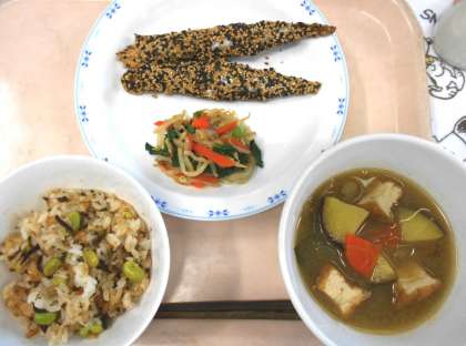 今日の給食は、お箸でいただく和食の献立です。子どもたちには、ぜひお箸を上手に扱うことのできるお箸の達人になってほしいと思います。