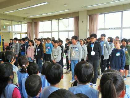 今度は5年生がリードをして、幼稚園の修了(卒園)、小学校入学に向けてのメッセージを伝えました。