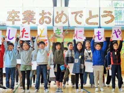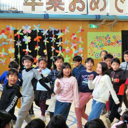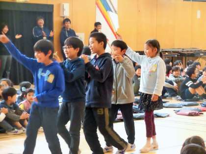 3年生は、歌と踊りとメッセージカード。嵐の「Happiness」を歌いました。