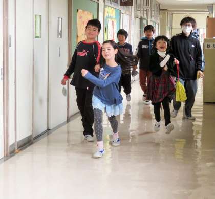 先週金曜日の給食から昼休みの時間に、「なかよし班お別れセレモニー」を行いました。まずは、お世話になった6年生を教室にお迎えしました。