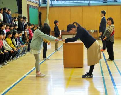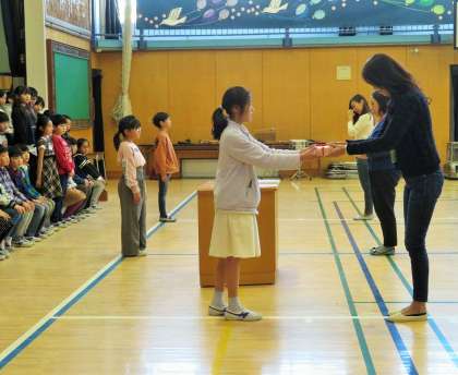 子どもたちは、この10年間を振り返り、感謝の気持ちや普段伝えられない言葉を、お手紙にして伝えました。また、担任の先生からは「二分の一成人証書」が手渡されました。
