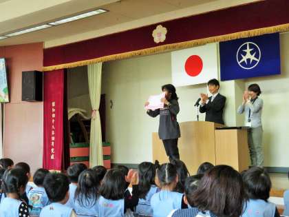 修了証書を担任の先生に代表で手渡しました。最後に、元気よく園歌を歌いました。