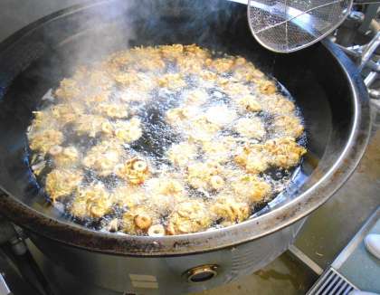 今日の給食は、6年生のリクエストメニューの<かきあげ丼>です。さつまいも、たまねぎ、にんじん、じゃこ、ちくわ、大豆、枝豆を使い、ひとつひとつ丁寧に揚げました。教室をまわっていると、おかわりの行列ができていました。おいしそうに食べる子どもたちの笑顔に、また今日もパワーをもらいました。