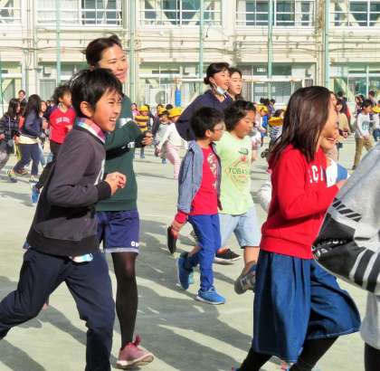 毎朝、多くの先生たちが一緒に走っていますので、子どもたちは嬉しそうです!