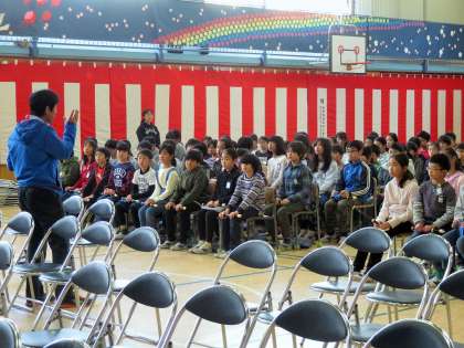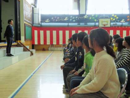 練習後に、先生からの話がありました。6年生は、4・5年生の協力にお礼をしました。4・5年生は、6年生から学んだことに対してお礼をしました。