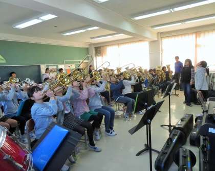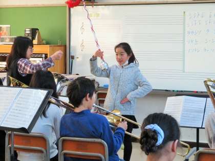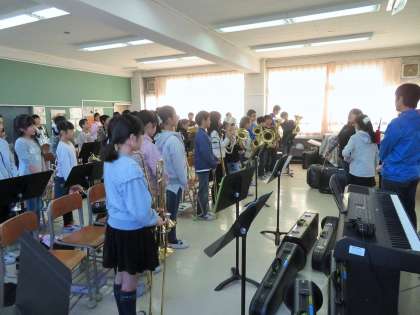 最後に、音楽の遠藤先生に感謝の気持ちを表しました。(体育館のフラッグ練習には間に合いませんでした。ごめんなさい)