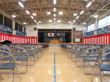 子どもたちの下校後は、教職員が心を込めて会場準備を行いました。子どもたちの思い出に残る卒業式にしたいと思っています。