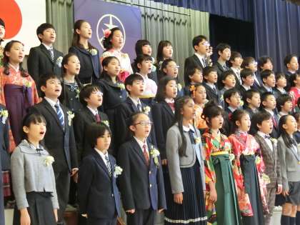 4・5・6年生が「旅立ちの日に」を共に歌い、歌声が響きあいました。