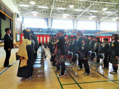 退場の瞬間、涙、涙の子も・・・感動の卒業式。