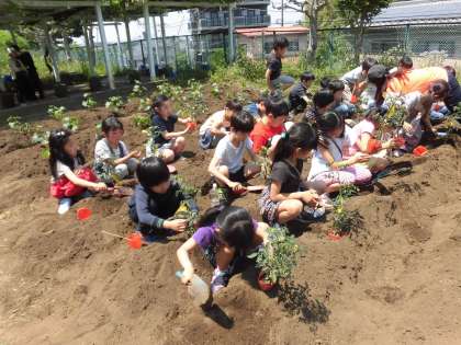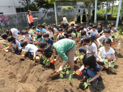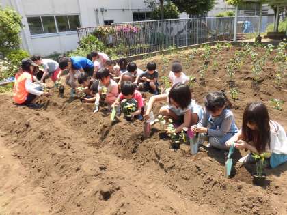 2年生の生活「やさいをそだてよう」で野菜の苗を植えました。