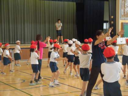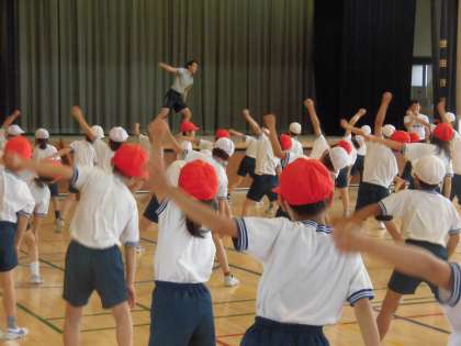 本格的に運動会の練習が始まり、各学年、練習が熱を帯びてきました。3.4年生は、「ルパン3.4年世」と題して、ルパンや銭形警部になりきって踊ります。振りを覚えたての子どもたちは、担任を見ながら、必死に振りを覚えています。
