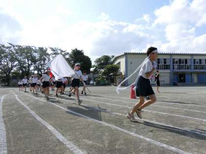 入場からの流れの確認や応援の練習を行いました。