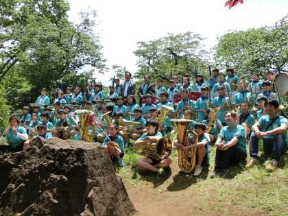 待ち時間の間、激励にこられた区長さんと一緒に記念写真を撮りました。そして、事前の音出しでコンディションを整えました。いざ本番です。